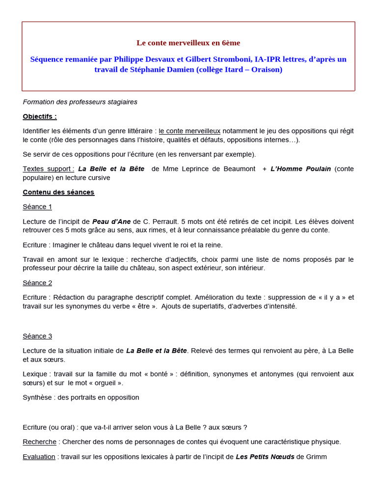 Conte Merveilleux 6eme Iaipr PDF
