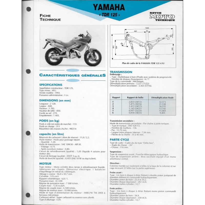 YAMAHA TDR 125 de 1993 (Fiche RMT)