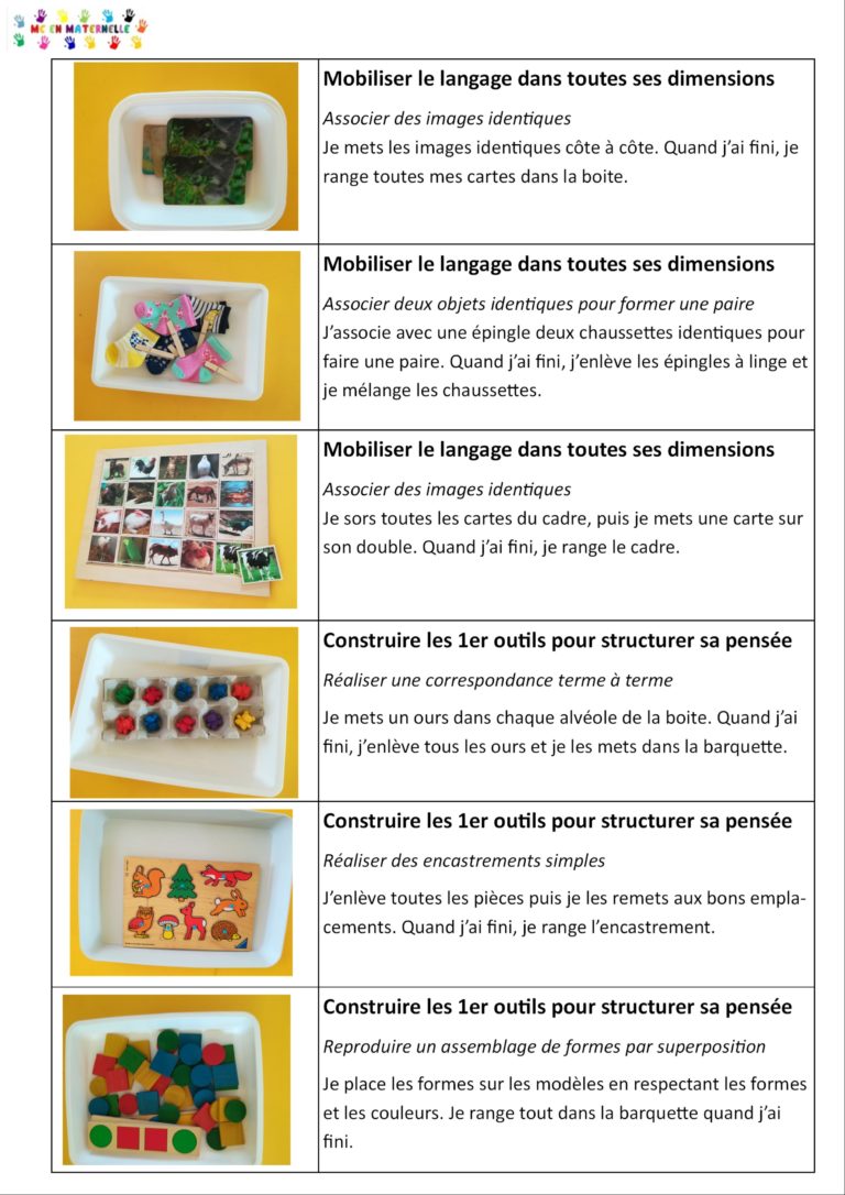 Ateliers autonomes Période 1 pour les petites sections (PS) MC en maternelle