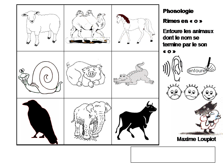 Maternelle Phonologie Rimes en o avec des noms d'animaux